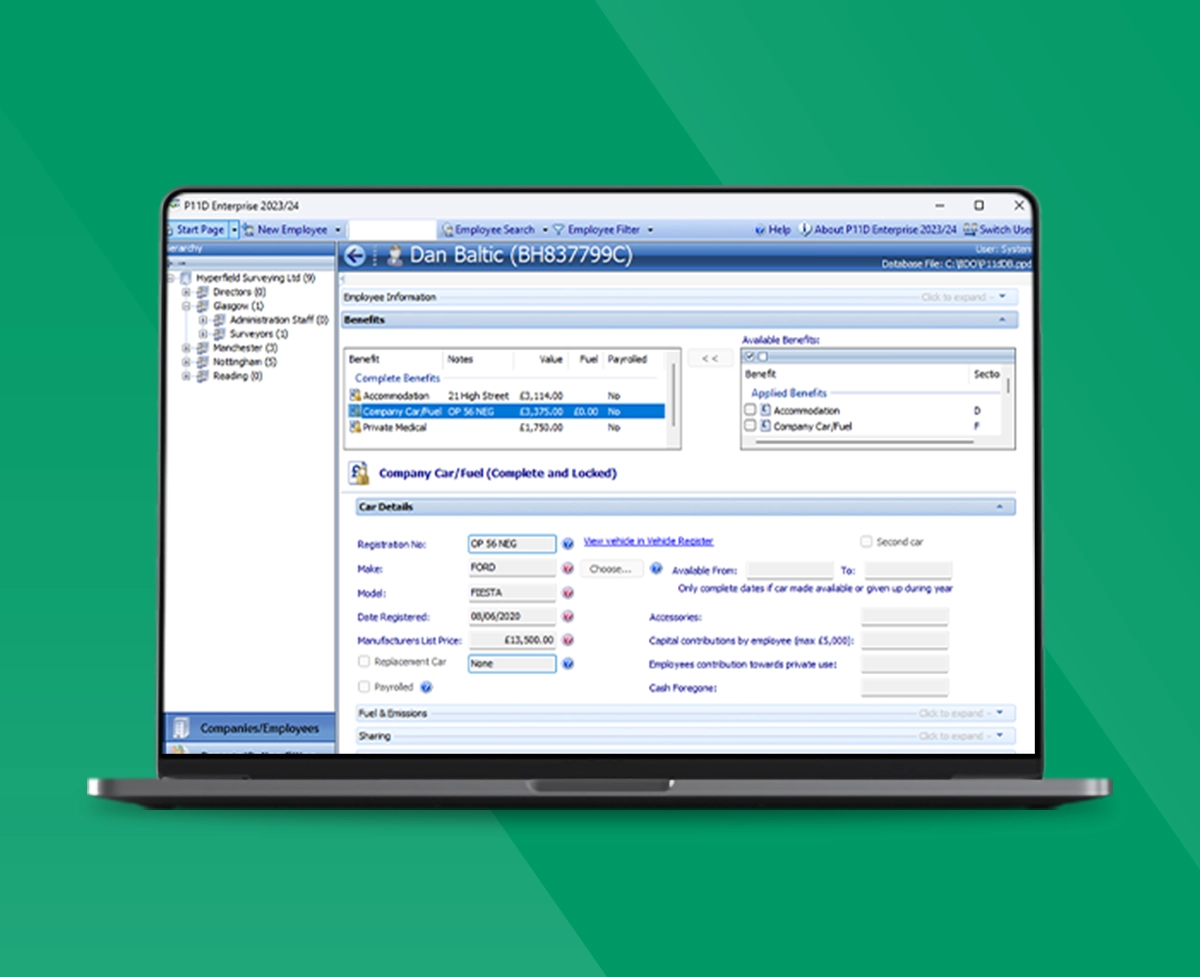 The software supports preparation of forms P11D, P11D(b) and P46(Car).